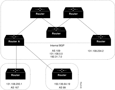 router bgp 109 network 131.108.0.0 network 192.31.7.0 neighbor 131.108.200.1 remote-as 167 neighbor 131.108.234.2 remote-as 109 neighbor 150.136.64.19 remote-as 99